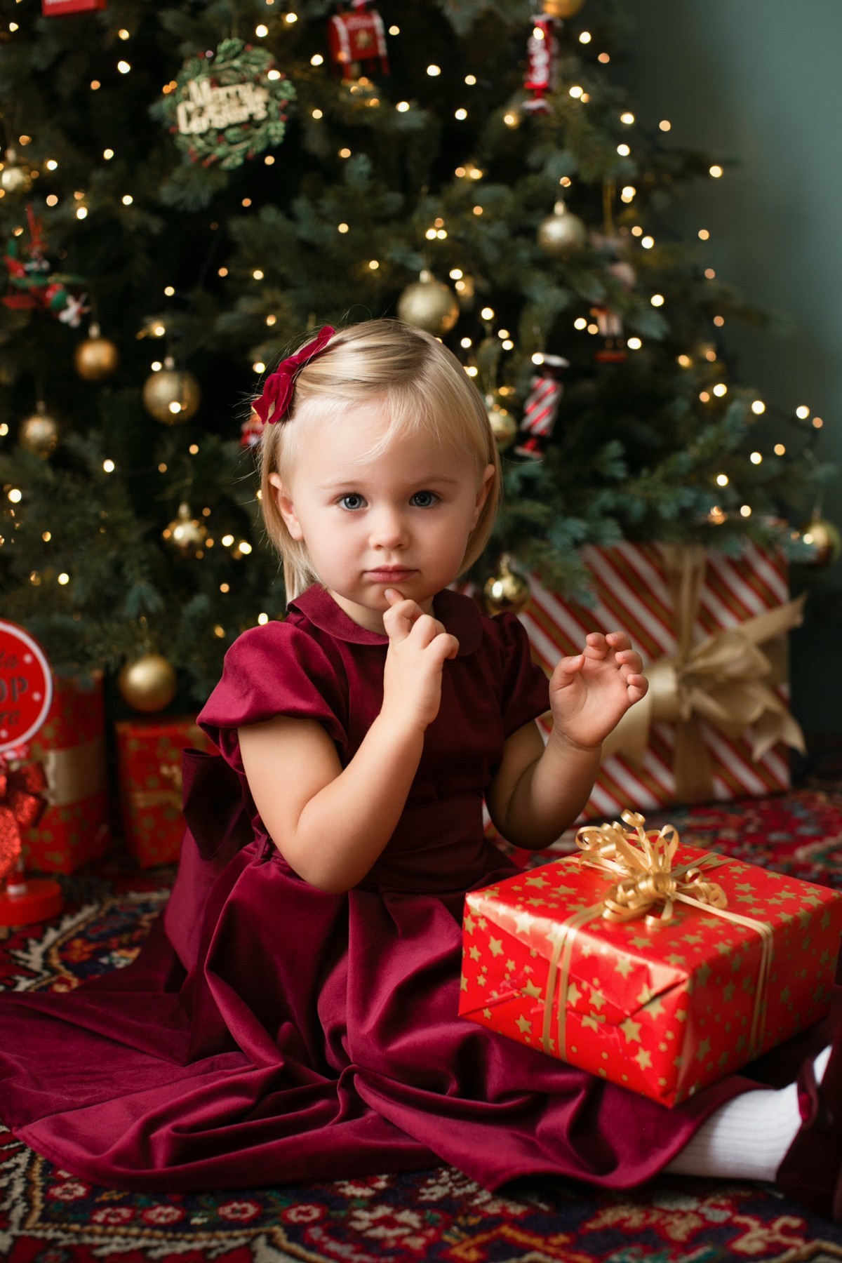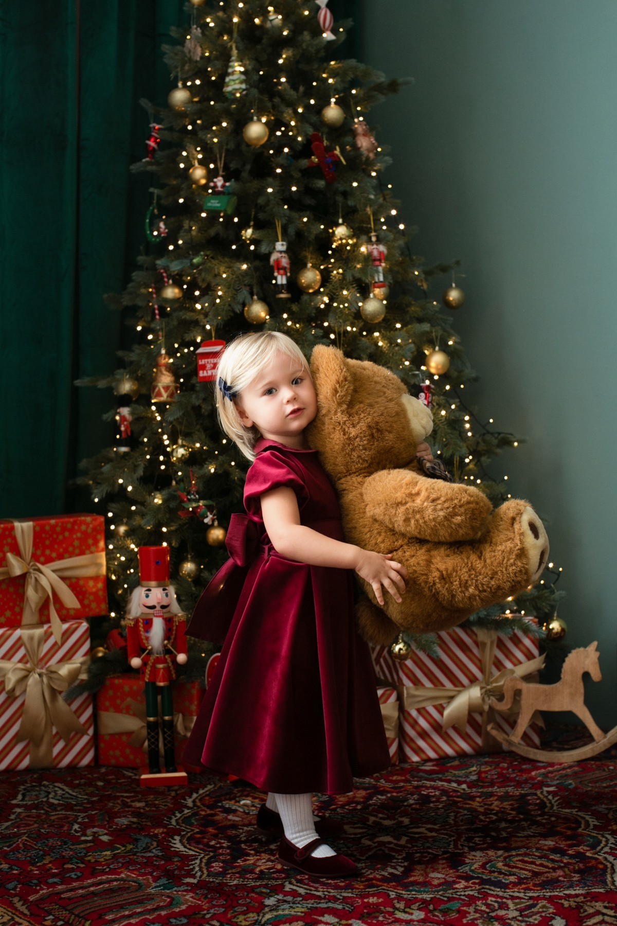 Per le collezioni Classic e Premium, ti consiglio di portare oltre al cambio natalizio anche un cambio neutro, così potremo realizzare sia scatti sul set di Natale sia ritratti più semplici e senza tempo.